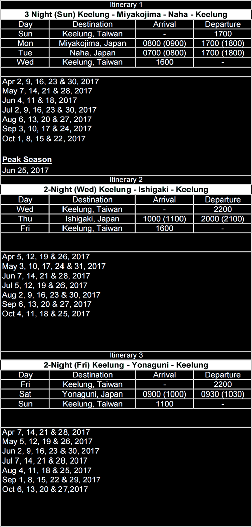 3. Berthing time may change subject to the availability of berths at different ports. Notice of the time changes will be given one week prior to departure.